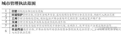 《办法》提到,城市管理的执法范围主要涉及住建、环保、工商、交通、水务、食药6个领域。