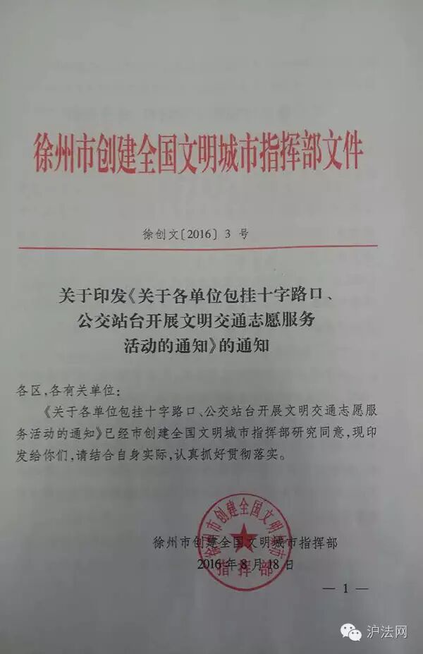 徐州市印发的《关于各单位包挂十字路口、公交站台开展文明交通志愿服务活动的通知》
