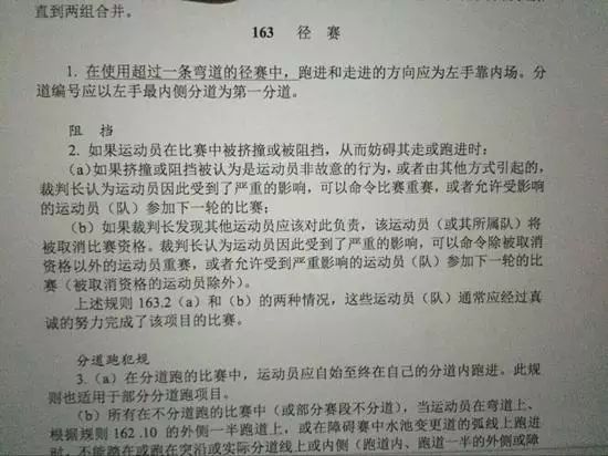 我们打开《田径竞赛规则与裁判法解析(2014版)》,翻阅到“对比赛中出现阻挡情况的处理”,看看真相到底如何。