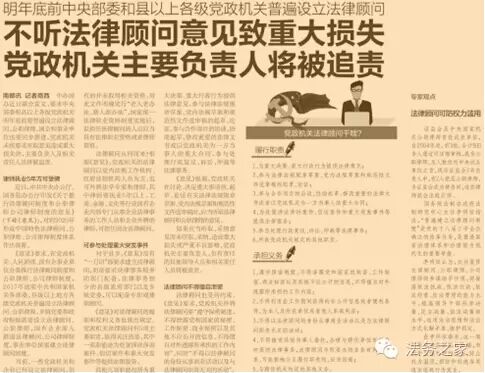 2017,不听法律顾问意见致重大损失,党政机关主要负责人将被追责